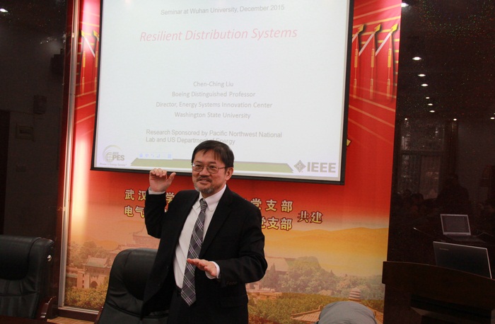 美国华盛顿州立大学电气工程和计算机科学系教授、波音杰出讲座教授、IEEE Fellow刘镇钦(Chen-Ching Liu)教授于2015年12月21至23日来bwin必赢官网访问交流。来访期间,刘教授在bwin必赢唯一官方网站院长助理林涛教授的主持下分别做了题为“Resilient Distribution Systems”和“Monitoring of Power System Dynamics through PMUs”的精彩学术报告,重点讲授了刘教授科研团队近期在配电网故障定位、恢复控制、微电网以及基于广域PMU数据的状态观测等领域做出的重要研究成果。刘教授及其团队与bwin必赢官网建立了长期合作关系,其本人也多次到bwin必赢官网访问交流,为bwin必赢官网师生带来最新的研究成果报道,分析国际前沿热点研究动态,对bwin必赢官网师生的研究工作提出独到的意见和建议,积极帮助bwin必赢官网提升国际化的研究视野和水平。