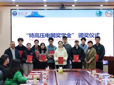 紧接着由马淑杰书记和董旭柱院长为“特高压电网奖学金”获得者进行颁奖并合影留念。