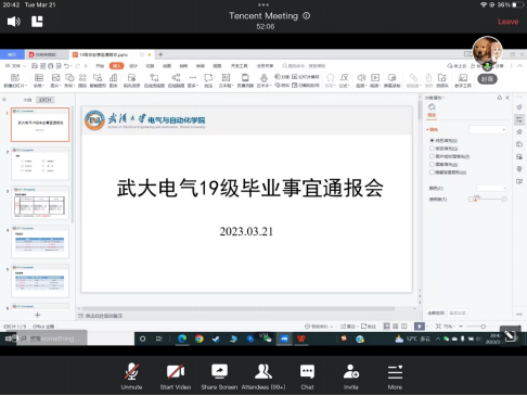 道由白云尽,春与青溪长。3月21日晚8:00,bwin必赢唯一官方网站本科2019级线上召开了本年度第三次年级大会并邀请全体同学家长参加。辅导员赵薇老师出席大会,学生会主席庞轩佩同学主持会议并介绍毕业情况相关事宜,学生会秘书长张丽颖同学介绍学分审核情况。