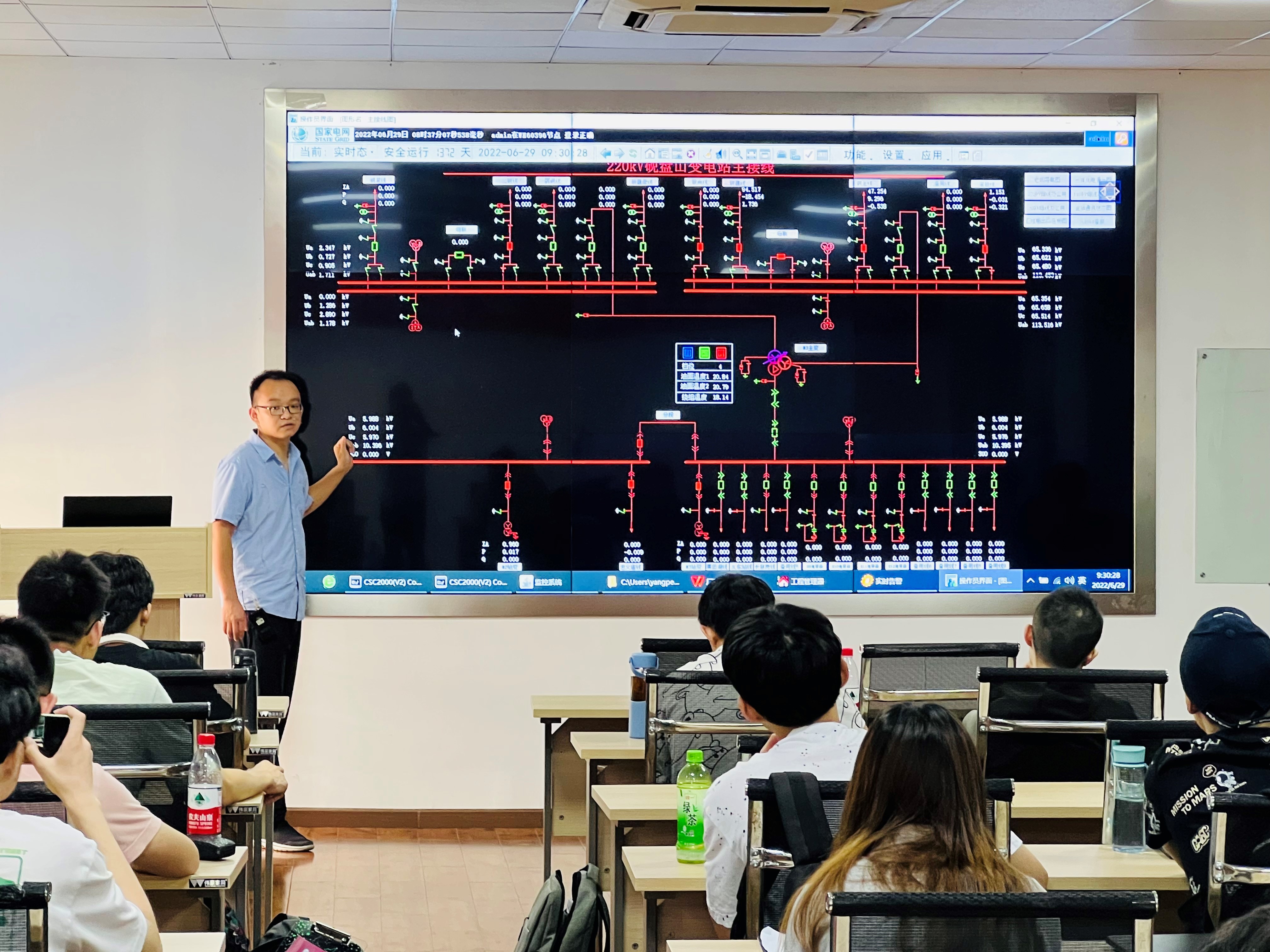 此次四方公司武汉培训基地与学院接洽后积极设计培训环节,力求将真实的现场环境呈现给大家。在课程安排上遵循了以下几点特色,一是理论知识讲解紧紧联系现场和当前新技术的应用。理论课堂着重给同学们讲解了目前国内主流智能变电站网络结构以及不同电压等级变电站二次设备配置原则;带领同学们学习常规变电站与智能站的异同,结合现场实际工程项目认识监控系统......理论课程不离现场应用,不离课本基础知识。