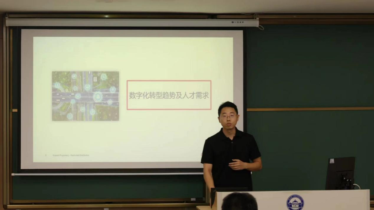 互动之后,陈卓专家作了“领域知识,开发者认证讲解”的主题宣讲。在宣讲中,陈卓专家讲解了如今生态领域的数字化转型趋势和人才需求以及开发者认证的相关要求,同学们在老师的指导下,顺利通过了考核,完成了华为云人工智能开发者认证。