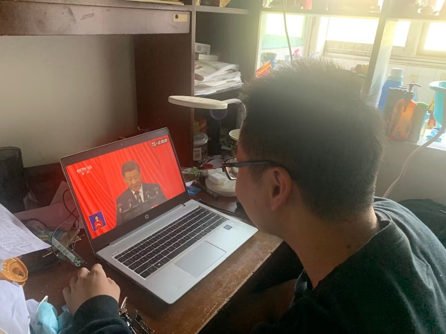 本科生第一党支部邓浩程:中国共产党全国代表大会今天上午10点在人民大会堂开幕,我认真听取了习近平总书记代表第十九届中央委员会向党的二十大作的报告。报告内容丰富,既是对党过去发展党第二十次路线、任务的全面梳理和总结,又有足够的新意,展望了未来党团结带领全国各族人民全面建成社会主义现代化强国、实现第二个百年奋斗目标,以中国式现代化全面推进中华民族伟大复兴。当代中国青年生逢其时,施展才干的舞台无比广阔,实现梦想的前景无比光明。作为青年党员,我要坚定不移听党话、跟党走,牢记总书记的重托,怀抱梦想又脚踏实地,立志做有理想、敢担当、能吃苦、肯奋斗的新时代好青年,让青春在全面建设社会主义现代化国家的火热实践中绽放绚丽之花。