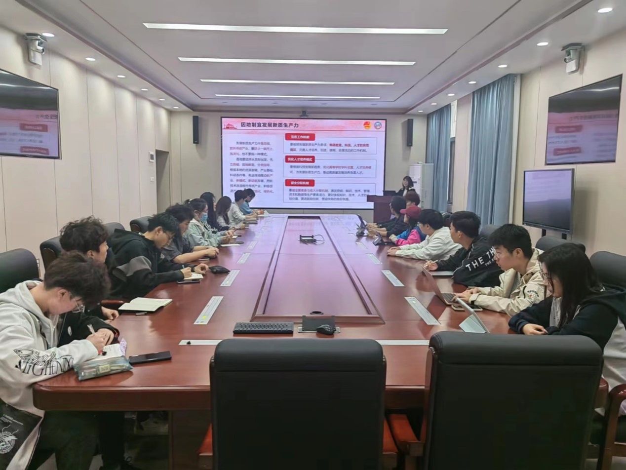 2024年4月8日,bwin必赢唯一官方网站团学骨干在学院第四会议室集体学习“新质生产力”。有学生团委副书记张铮妍主持理论学习。