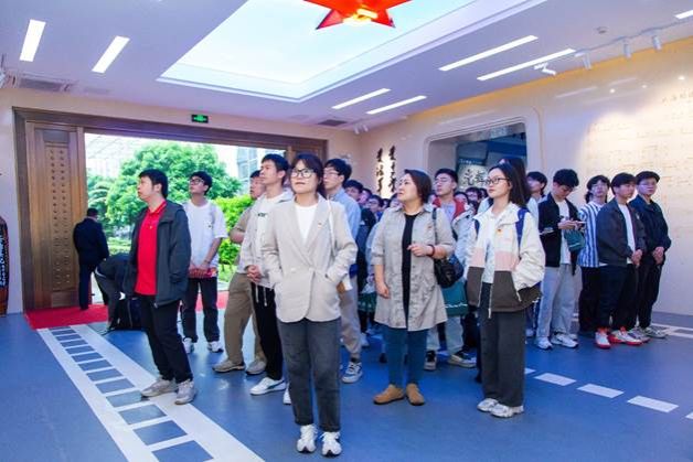 活动伊始,同学们在海军工程大学讲解员的带领下,参观了校史馆。讲解员详细介绍了《海工赋》和《走向深蓝》雕像,让同学们深刻感受到了海军工程大学深厚的历史底蕴和海工精神的独特魅力。随后,讲解员带领大家回顾了海军工程大学的发展历程,从学校的前身到如今以来的重要历史节点,每一段历程都凝聚着海军工程大学人的智慧和汗水。